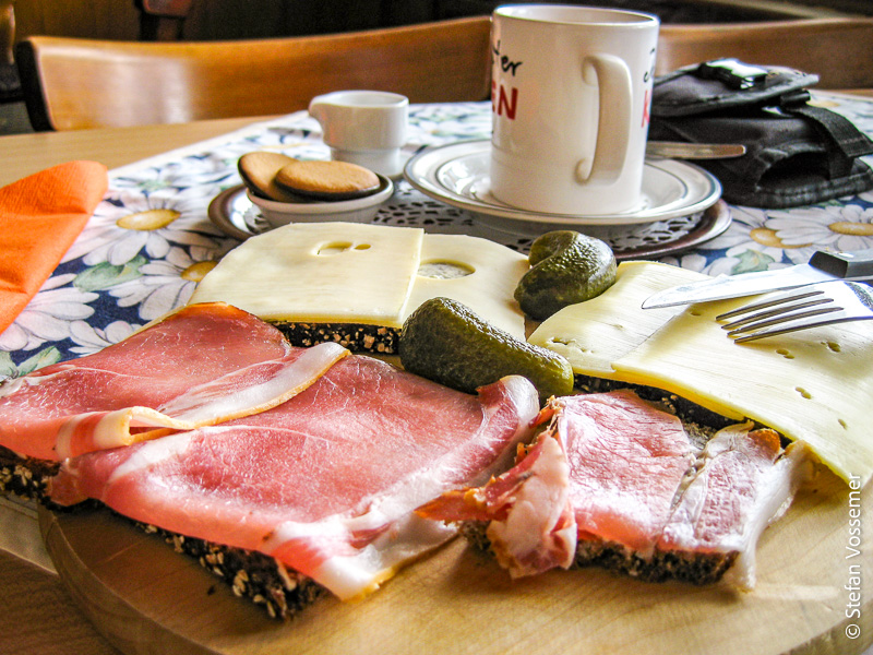 Dummerweise ist die Bedienung der deutschen Sprache allerdings so wenig mächtig, dass es mir zunächst einfach nicht gelingt, so ein belegtes Brot zu bekommen! Immer wieder vermutet er, dass ich irgendetwas mit meinem ebenfalls bestellten Cappuccino gemacht haben möchte. Erst als ich das Sandwich als Toast bezeichne, habe ich endlich Erfolg!