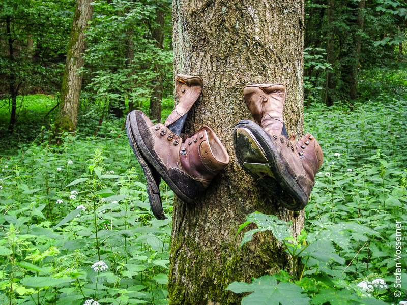 Inzwischen ist es schon 12 Uhr, und ich habe Göttingen noch nicht einmal verlassen. Also sehe ich zu, dass ich das mal in südlicher Richtung ändere. Und nur ein paar Straßen weiter passiert das, womit ich gar nicht mehr gerechnet habe: Ich entdecke eine Muschel an einem Laternenpfeiler! Und von hier an klebt dann an jeder zweiten Laterne ein weiterer Wegweiser. Ich bin begeistert!