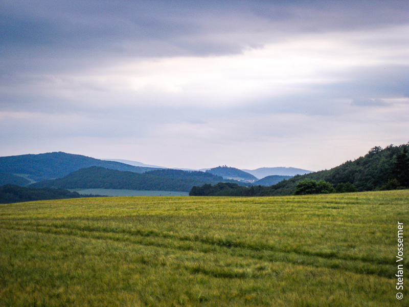 Am Ortseingang von Rustenfelde spricht mich plötzlich eine junge Frau an. Wie sich herausstellt, ist sie die populären letzten 100 km vor Santiago auf dem Camino unterwegs gewesen. Sie begleitet mich noch eine Weile und erzählt mir, dass es hier im Ort leider keine Übernachtungsmöglichkeiten gibt, dafür aber in Burgwalde, das in gut 3 km folgt. Also definitiv machbar – wenn da nicht die unangenehmen Schmerzen im Schienbein wären, die mich seit Kurzem etwas ausbremsen. Also lege ich noch mal eine kurze Pause ein und gehe dann die hoffentlich letzten Kilometer des heutigen Tages.