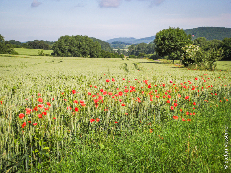 Aber er kann mir zumindest bestätigen, dass die Strecke, die Google mir vorschlägt, im Großen und Ganzen sinnvoll ist. Außerdem weist er mich darauf hin, dass sie demnächst über einen 500 m hohen Berg verlaufen wird. Aber er macht mir auch Hoffnungen darauf, dass es im rund 20 km entfernten Geismar eine kirchliche Unterkunft gibt, bei der ich sehr wahrscheinlich Station machen kann.