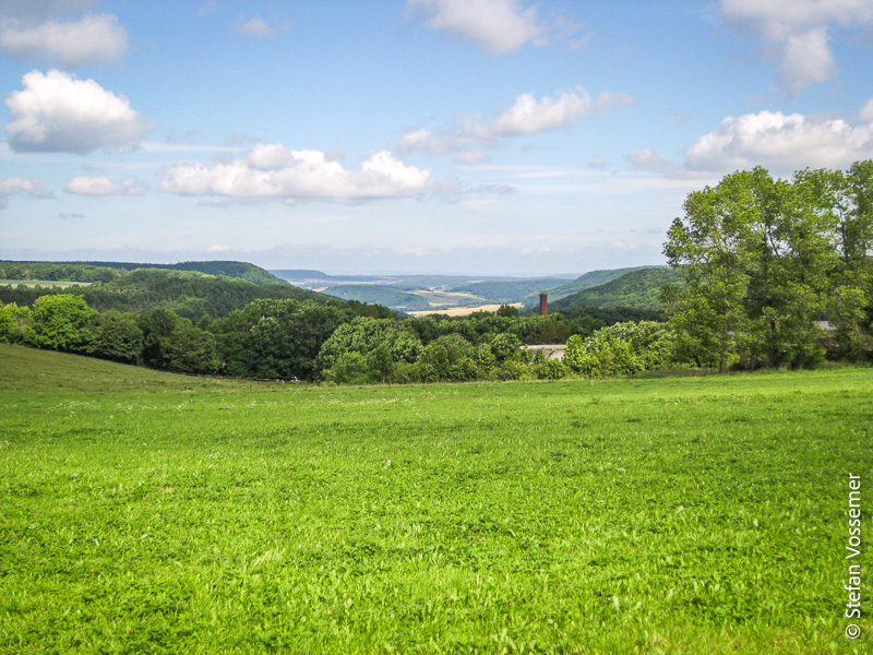 Umgeben von malerischen Hügelketten und pittoresken Ortschaften finde ich meinen Weg nach Geismar und treffe dort direkt im Pfarramt auf den Verantwortlichen für die Unterkunft. Nur leider muss er mir gestehen, dass die Räumlichkeiten gerade umgebaut werden. Zudem hat er auch keine konkrete Alternative für mich. Allerdings folgt in 7 km noch ein größerer Ort, der sicherlich auch über Unterkünfte verfügt. Seltsamerweise kann er mir aber nicht einmal sagen, ob es hier im Ort aktuell eine Einkehrmöglichkeit gibt. Also mache ich mich selbst auf die Suche und stoße relativ bald auf ein Eiscafé, das aber noch geschlossen zu sein scheint.