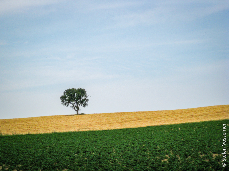 Die Strecke heute stellt sich als äußerst eintönig und unspektakulär heraus. Sie führt über lange Strecken an Straßen entlang und durch eher unscheinbare Ortschaften. Zu allem Überfluss zieht es sich auch wieder zu, was an den hohen Temperaturen und vor allem an der Schwüle nichts ändert. Zwischendurch muss ich die Verabredung mit Isabell um eine Stunde nach hinten korrigieren.